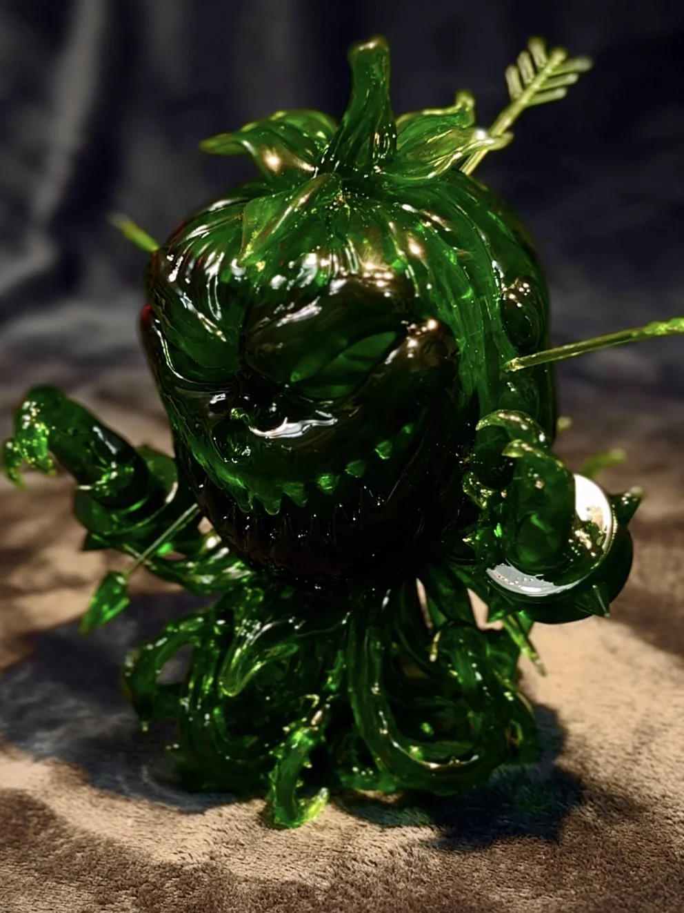 La figura sale en dos versiones: Mud Guardian Green, resina transparente verde con ese brillo tóxico del pantano; y Mud Guardian Hand-Painted, más pequeña pero más viva, pintada a mano por mí, una a una. Solo hay 20 unidades de cada versión, sin reimpresión. Cada figura viene con caja personalizada, certificado numerado y mi firma.
